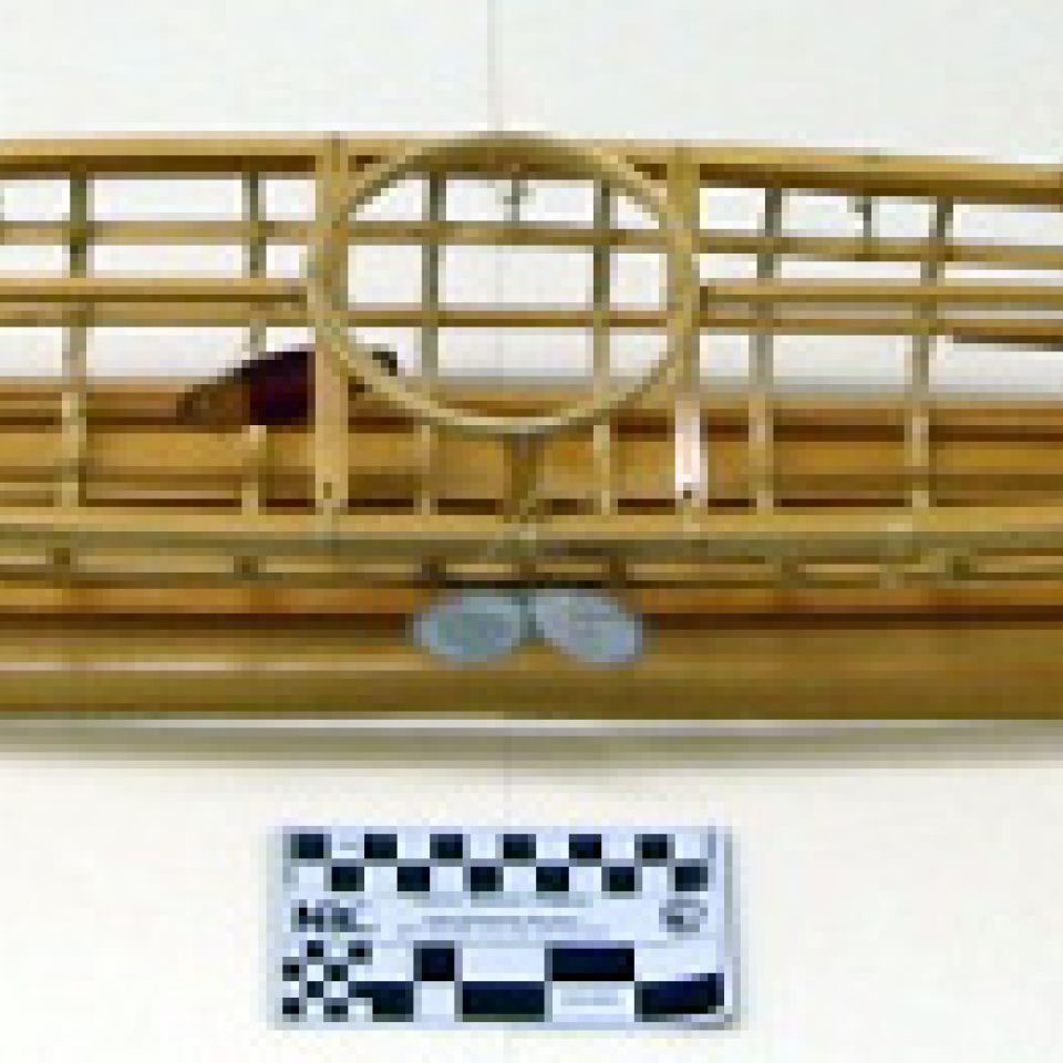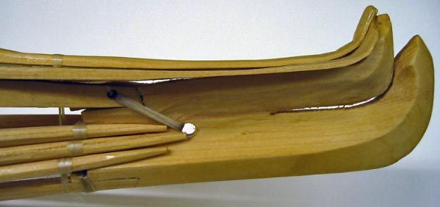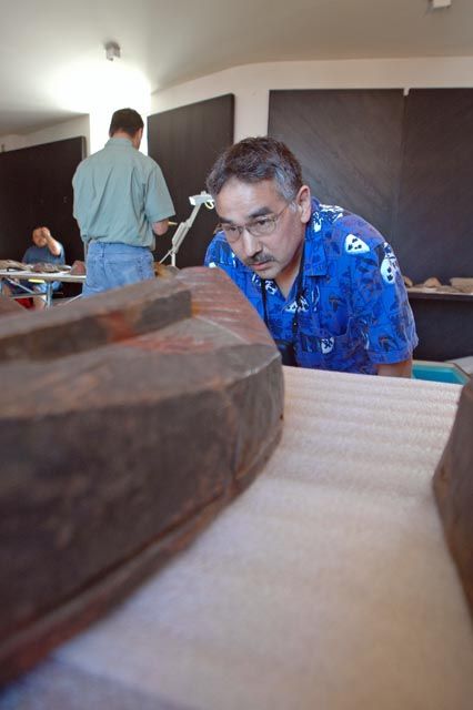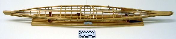 One of Alfred specialties is boat building.  He learned qayaq construction by working with the Late Larry Matfay, one of the foremost Kodiak Alutiiq tradition bearers of the twentieth century and the last chief of Akhiok.  As such, Naumoff’s work reflects a continous chain of knowledge passed through generation of Alutiiq men.  Larry Matfay learned boat building from his father Sava Matfay and his maternal grandfather Kejuk.  Importantly Larry’s wife, the late Martha Naumoff Matfay, was Alfred Naumoff’s aunt (his father’s sister).  Thus, Naumoff’s training reflects the Alutiiq tradition of apprenticing young carver to experienced male relatives.