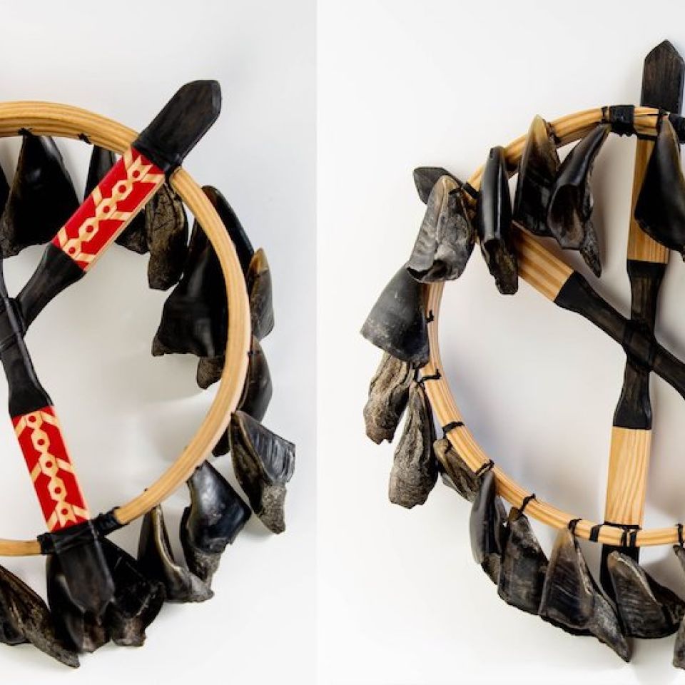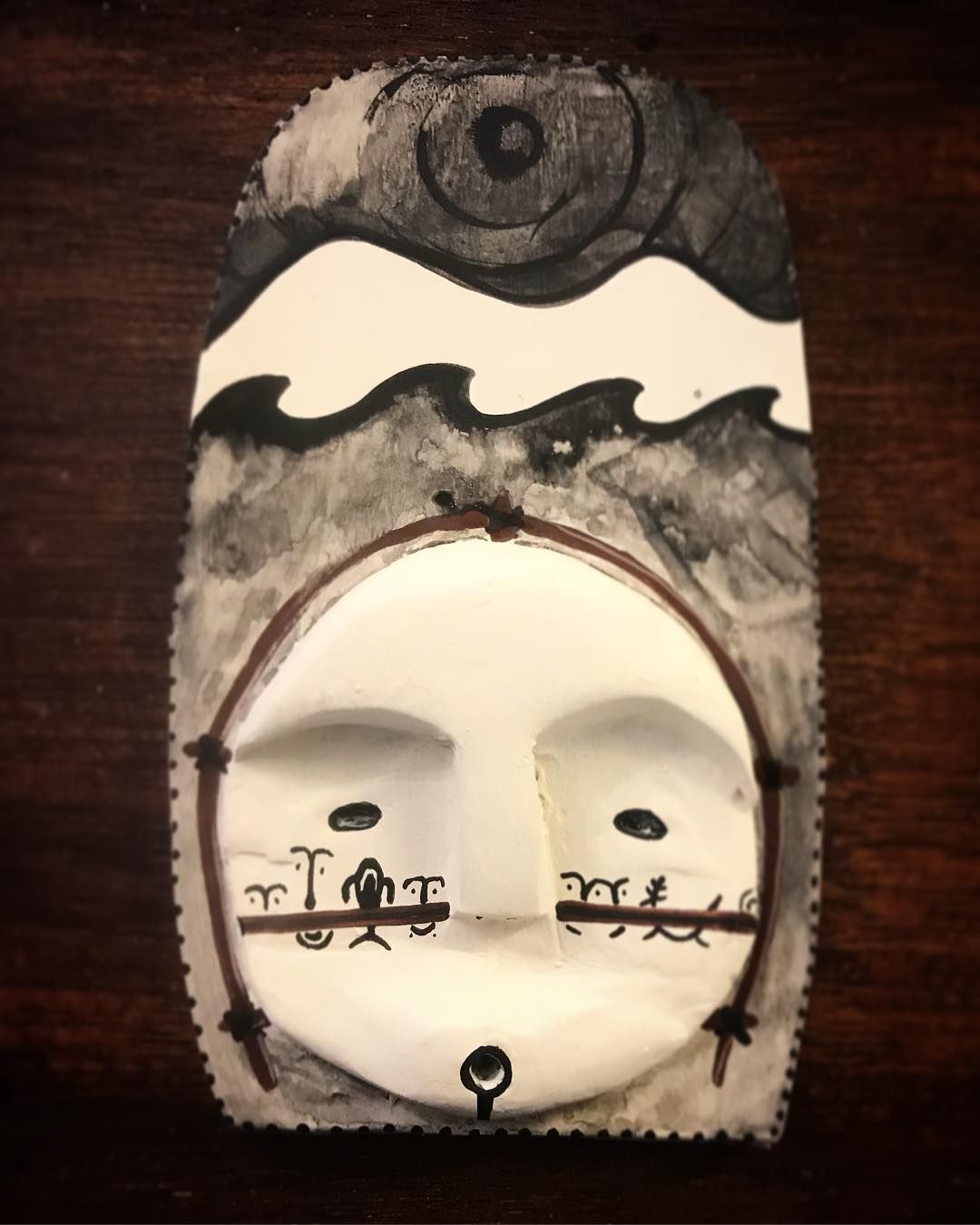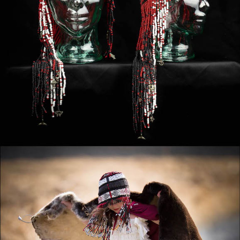 “With my artwork, my hopes are to always honor the resistance and creativity of our ancestors, combining contemporary with traditional methods. Currently I am working primarily with skin sewing, clay, acrylic paint, woodcarving, weaving, beading, mixed media, and photography. My intention is to have the works I create speak back to those who came to our homelands and described our ancestors in racist and negative ways. My hopes are also that it will speak to our people, a reminder that being strong and independent has always been part of our culture. And still is.”