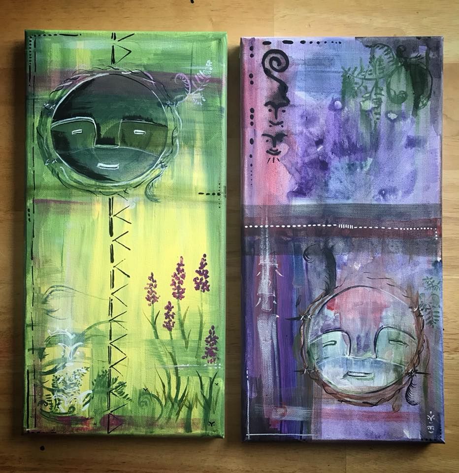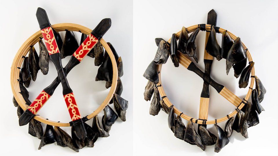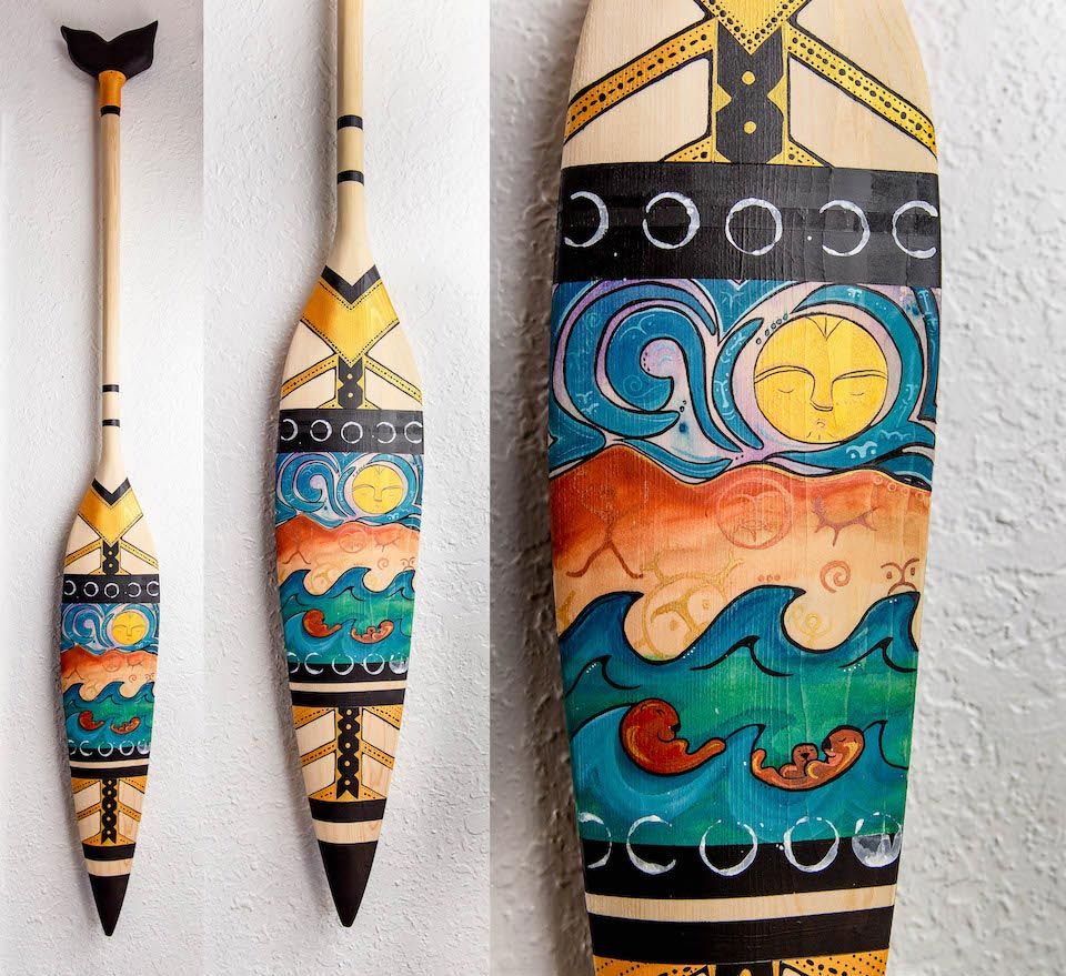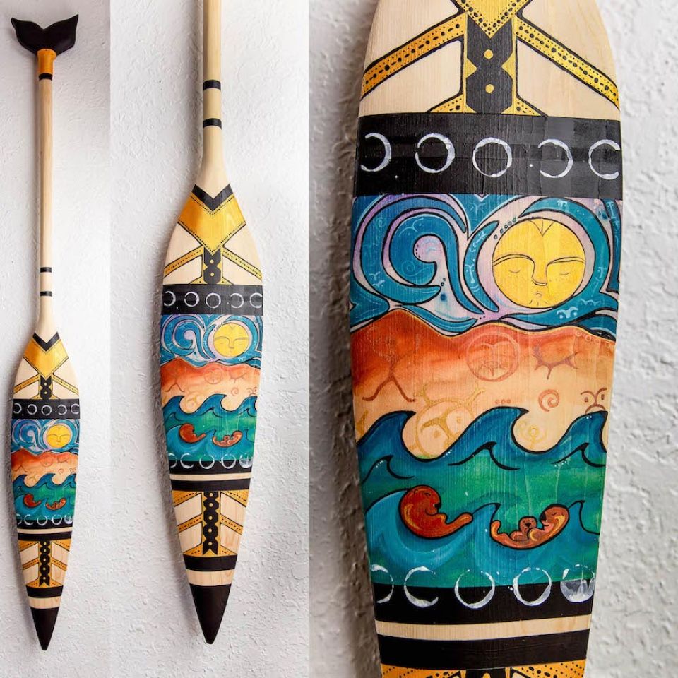 “With my artwork, my hopes are to always honor the resistance and creativity of our ancestors, combining contemporary with traditional methods. Currently I am working primarily with skin sewing, clay, acrylic paint, woodcarving, weaving, beading, mixed media, and photography. My intention is to have the works I create speak back to those who came to our homelands and described our ancestors in racist and negative ways. My hopes are also that it will speak to our people, a reminder that being strong and independent has always been part of our culture. And still is.”