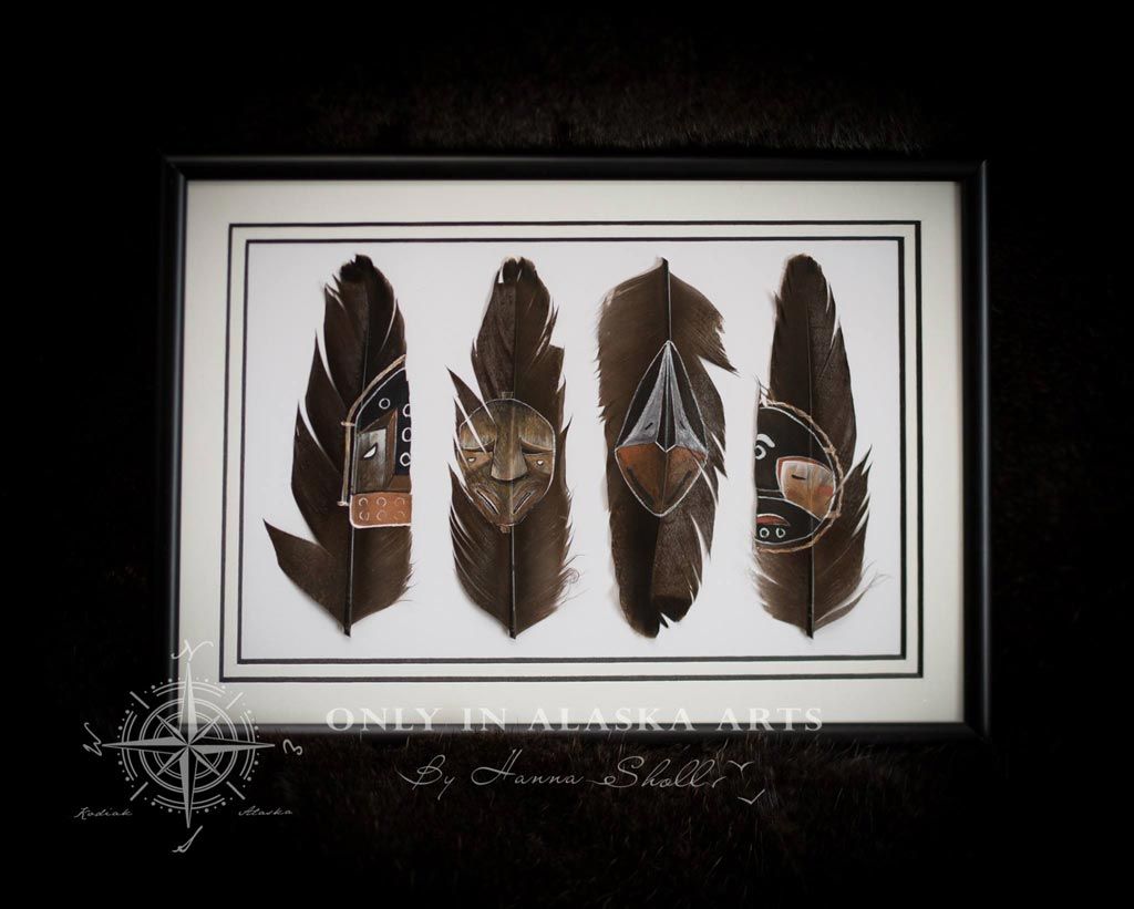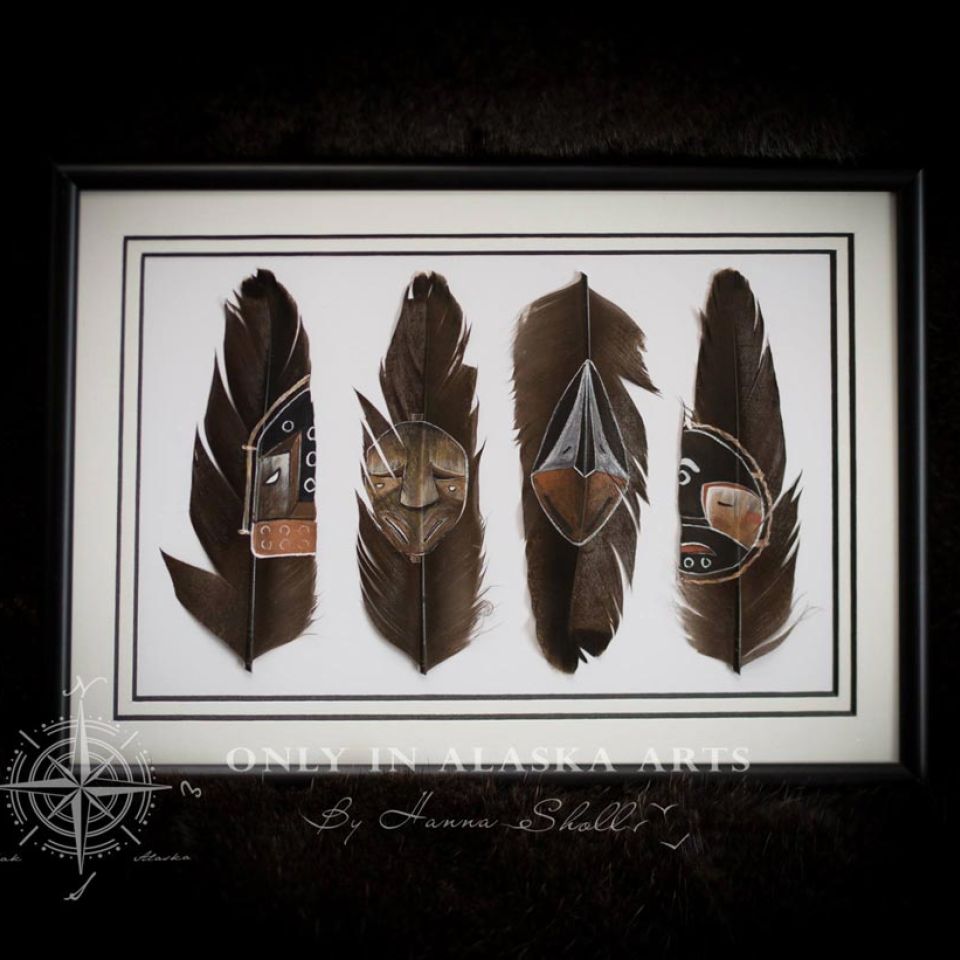 Since childhood Hanna has been drawn to various aspect of art. After moving back to Kodiak in 2006, she began exploring Alutiiq culture and Alaskan Native crafts. Under her first mentorship with Alaska Native Artist, Flossie Spencer, she started her journey as an Alutiiq artist, and began forming her business and developing her craft. In 2012 she married Jonathan “Gage” Sholl who plays a big role in supporting her artistically. She has been blessed with four children, who together with her husband, fuel her drive to share Alutiiq culture through art.