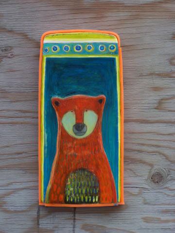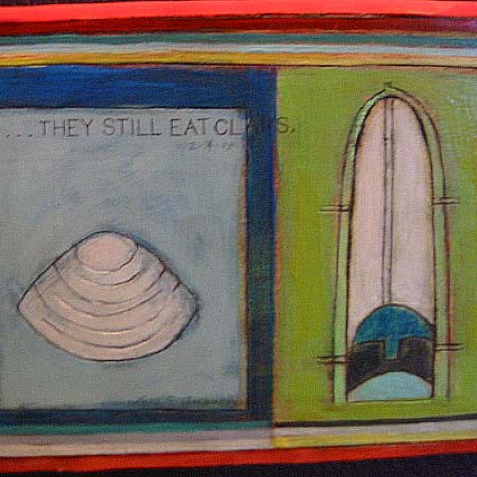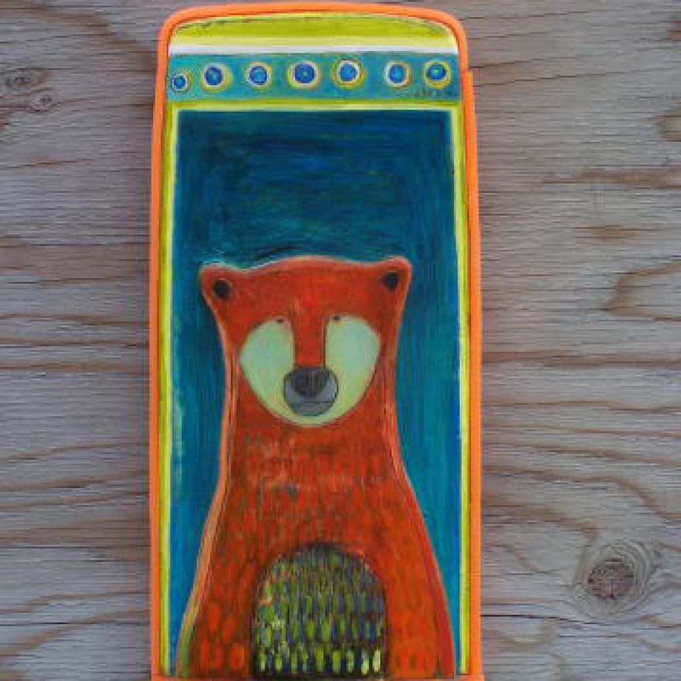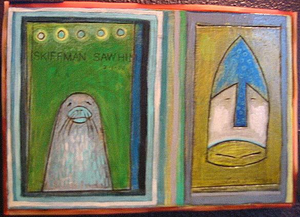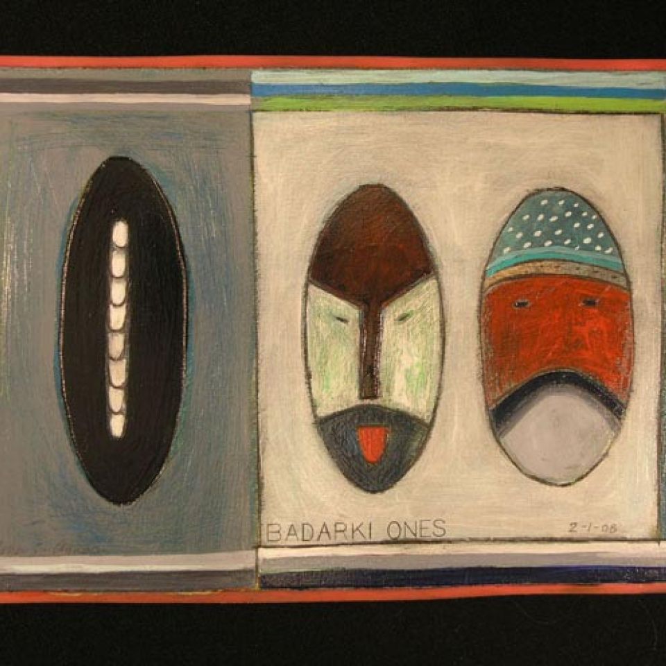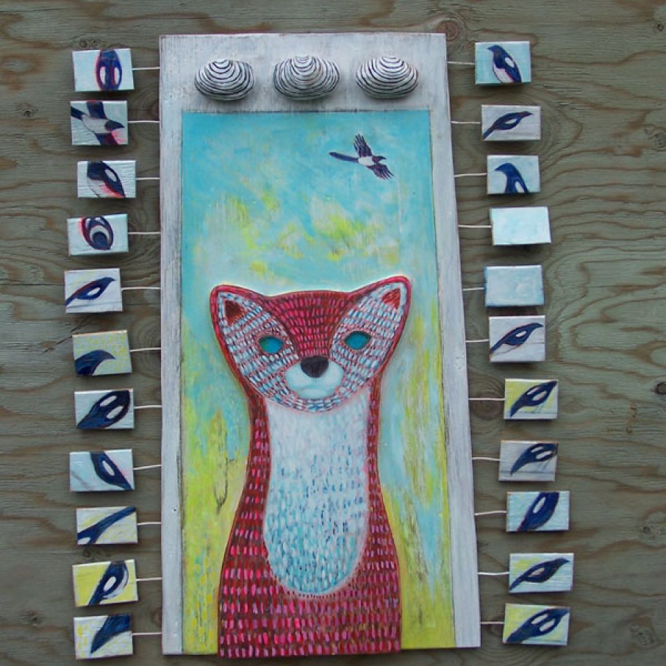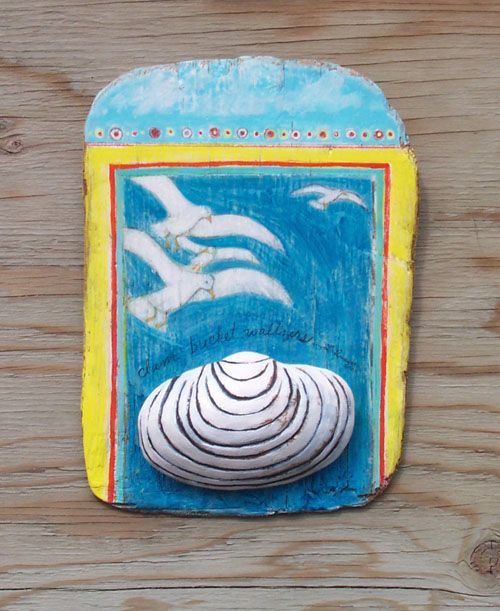 The days of all kinds of weather and attitudes of animals and people of this Island; the humor found in the things we say, the combination of Alutiiq/Russian/English languages to explain situations or create names and titles, experiences of encounters with local animals, birds, and marine life, and the belief systems and unspoken rules, the kind of local knowledge that can save your life if the weather comes up—these are what I pay attention to and what are on my mind as I show up every day to work in my studio, carve knife into wood, layer acrylic, draw into it with pencil, hit areas with sandpaper, and paint with oils. . . . the stories of my lifetime’s heritage that are worth telling.”