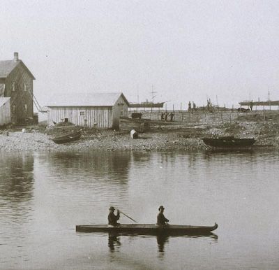 Photo: Men paddling in the Kalruk River, ca. 1899. Albatross Collection, National Archive 22-FA-1154.