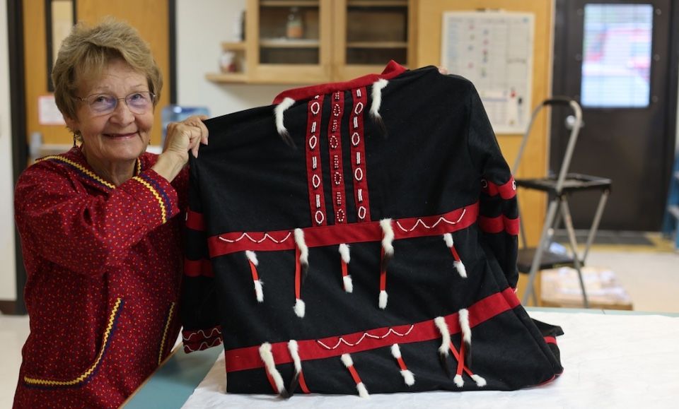 Malutin named the parka Threads of Remembrance. While working she thought of the women who came before her, how they collected all the materials for each garment, and how they transformed them into incredible works of art without modern conveniences like electricity. She also remembered her mother, Nona Morrison, a seamstress who filled Malutin with her love of sewing.
