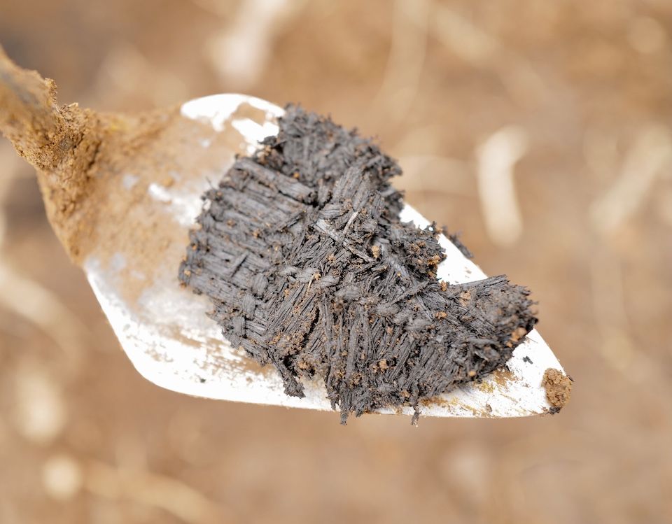 “We were excavating a sod house beside Karluk Lake as part of a broader study to understand how Alutiiq people used Kodiak’s interior,” said Saltonstall. “When we reached the floor, we discovered that the house had burned and collapsed. The walls of the structure, which were lined with wood, fell into the building and covered a portion of the floor. This sealed the floor quickly and limited burning. As we removed the remains of the walls, we were surprised and excited to find fragments of charred weaving. It looks like the house had grass mats on the floor. The pieces covered about a two-meter area at the back of the house, perhaps in an area for sleeping.”