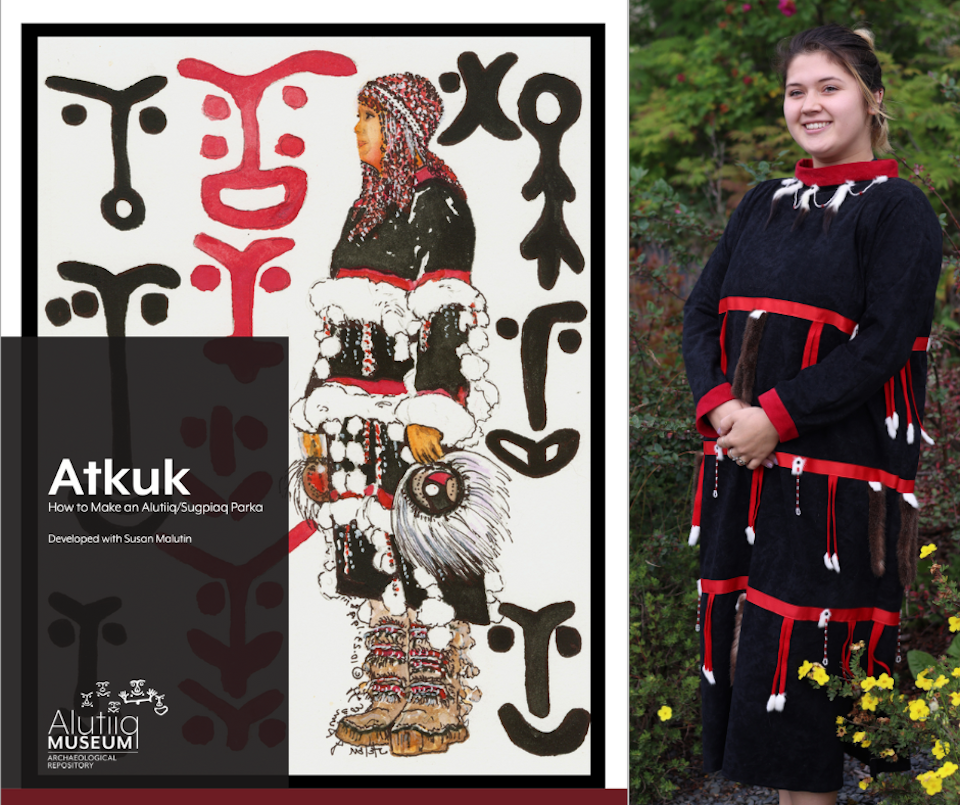 “This is not a simple project,” said Counceller, “It requires the use of a sewing machine and some patience. Yet, with materials available at a fabric store and our instructions, you can create an Alutiiq atkuk and decorate it in your own way.”