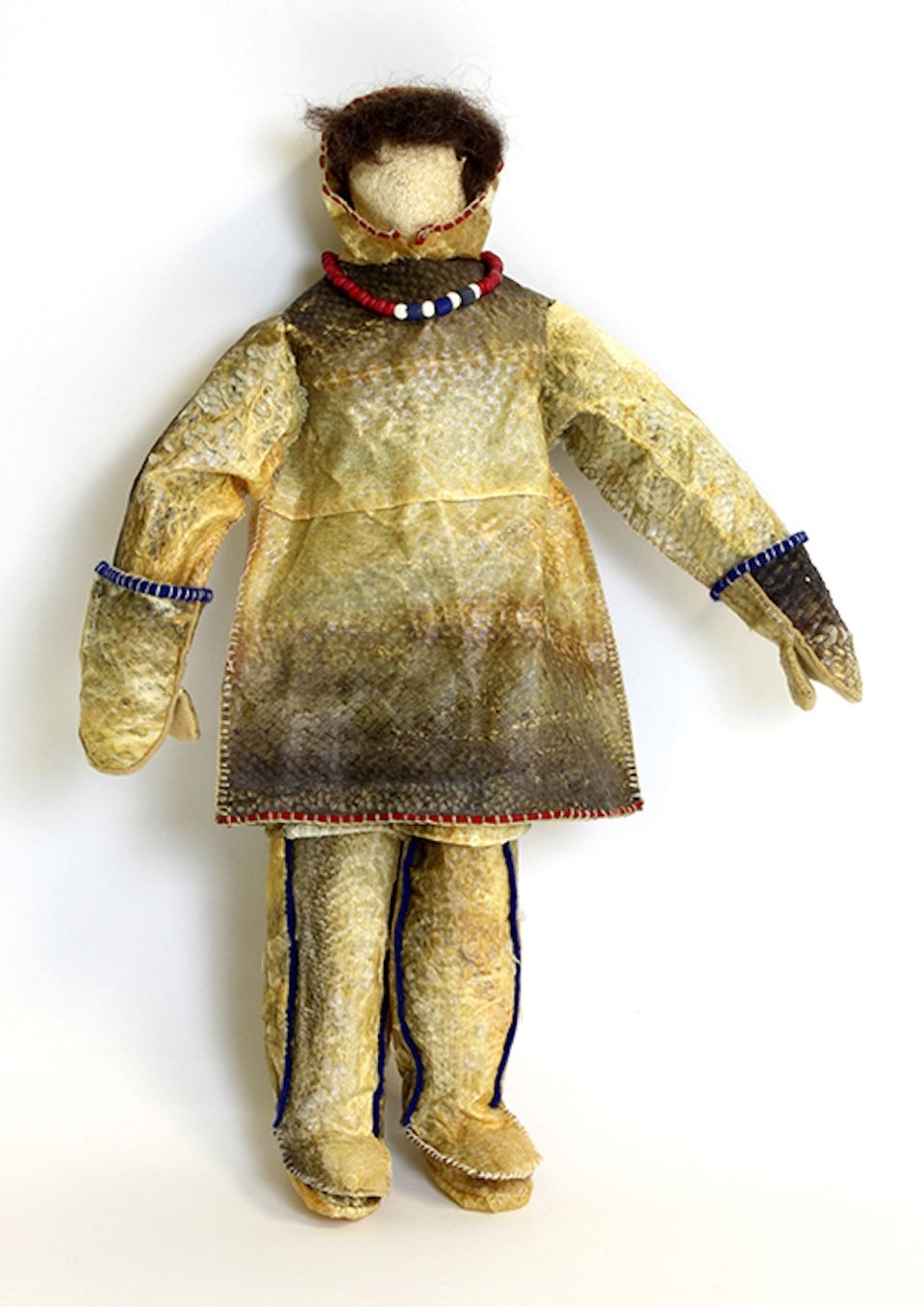 Fisherman, a doll made of deer hide, wood, fish skin, glass beads and wool, by June Pardue, 2010, purchased with support from Rasmuson Foundation. AM705.