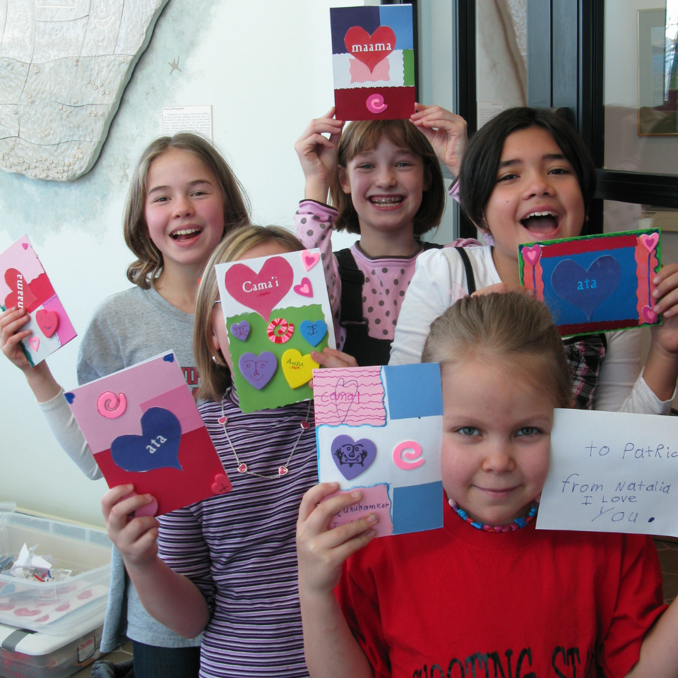 Students with their Alutiiq language valentines.