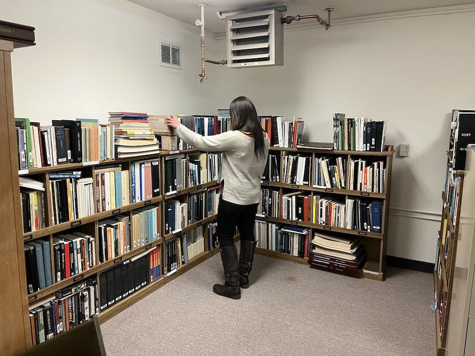 Lori Walker in the Koniag Cultural Library.