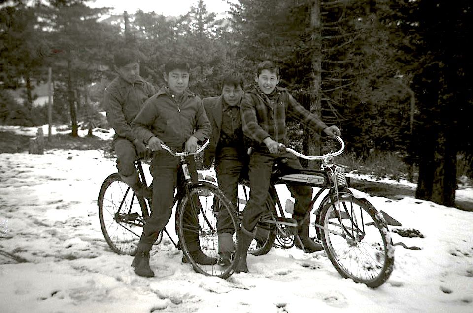 Ouzinkie boys on bikes, ca. 1940. Courtesy of Tim and Norman Smith.