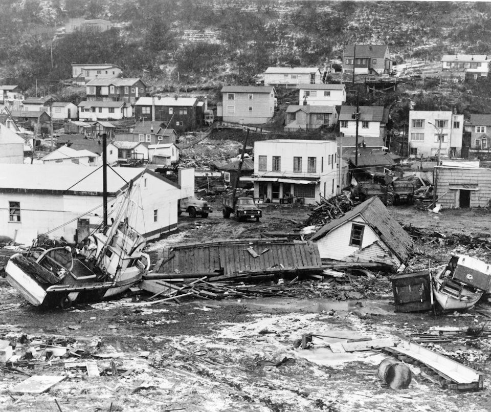 Downtown Kodiak following the Great Alaska Earthquake, 1964. Courtesy of the